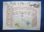 As always in my assignments you can tweak it to meet your areas of interest or just take a risk aka think outside the box. Almost all students put their myth of me projects on 8×11 paper or card stock. This student, Ashley, decided to paint the Myth of Me project on a canvas: