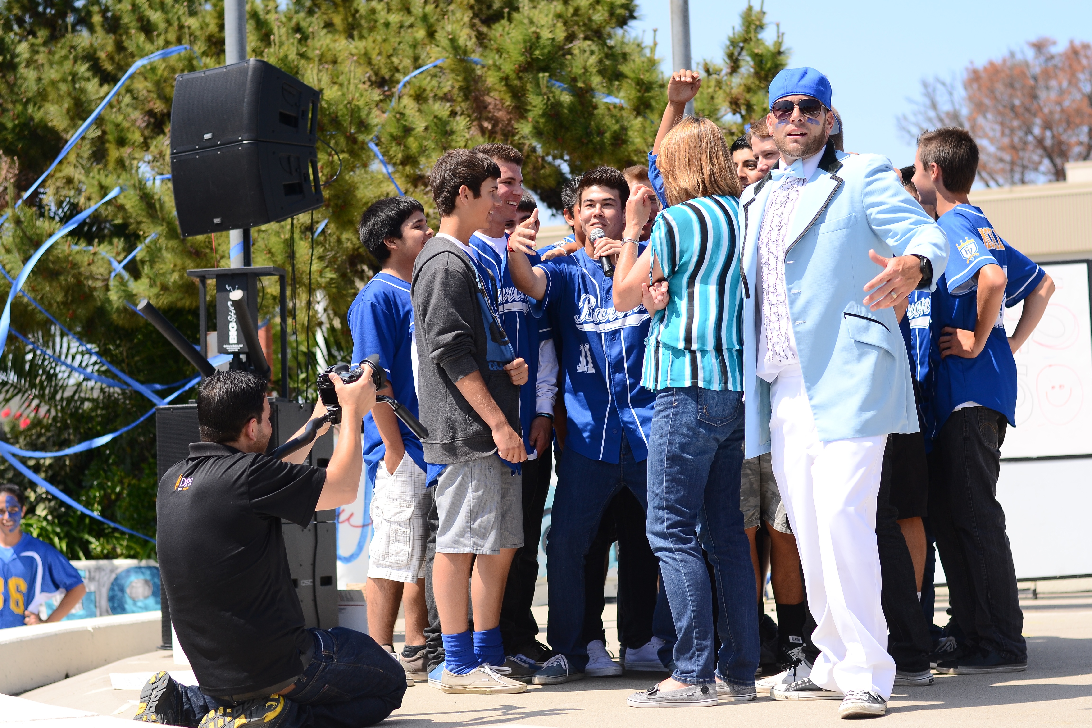 Ding, ding, ding… we have a winner. That’s one of my noble causes in the classroom. I LOVE creating memorable moments- the kinds that students bring up when they come back to visit in ten years. I tell every student that when they present in class I want other students to feel compelled to share the experience with others. You want proof of what Mr. Fraser stands for? We started a B4L program last year (Barons 4 Life) that brings back former Barons and celebrates them as well as creating moments that will drive students to wanting to behave in a way that makes them a Baron for life. It culminated in a Blue vs. Gold outdoor assembly. We have 3550 students. Imagine pulling off an outdoor assembly. Students and staff said it was one of the coolest things they’ve ever seen. Here’s the trailer we showed students in class to get them fired up: