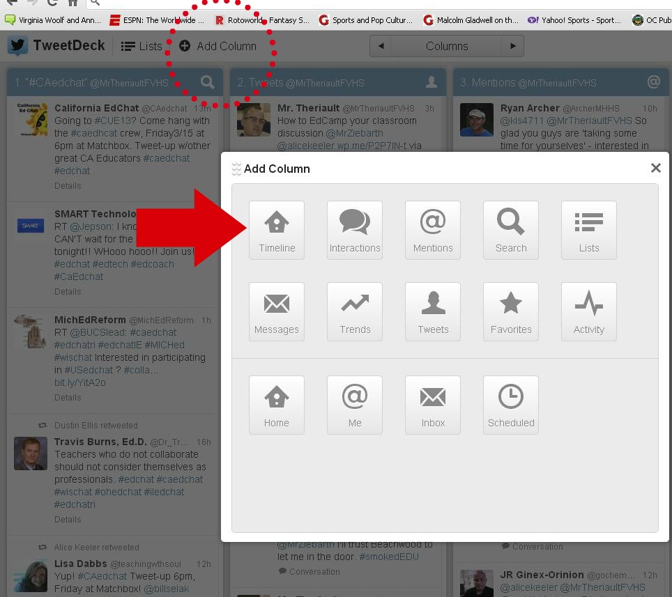 Once you find one you load your sign-in to your TweetDeck program. Then locate the “add a column” button and add the following columns.