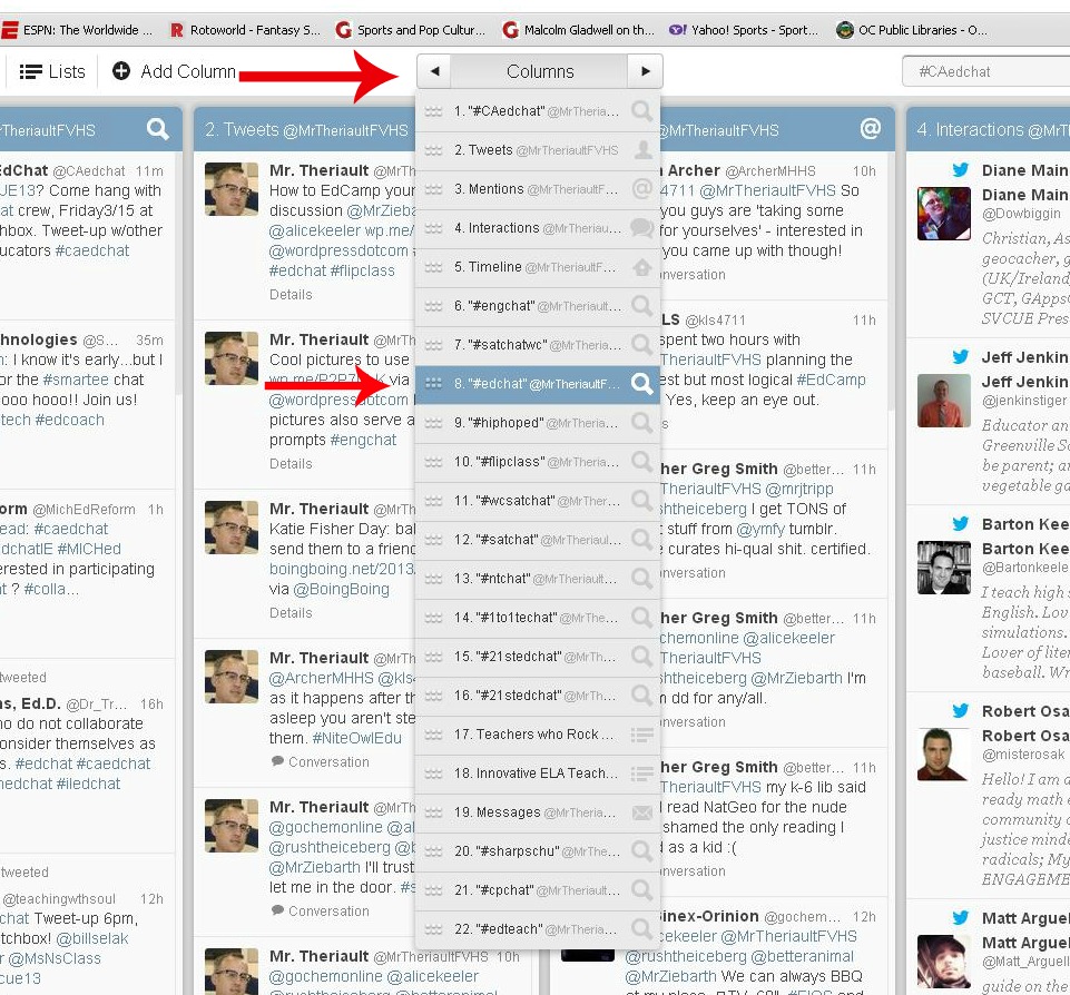 You can create a list ahead of time or if you know the names of all the #CAedchat mods you can put them in one list. I’ve made it easy for you. Here is the list of #CAedchat moderators.  You can even create the list inside of TweetDeck. Here is a picture.