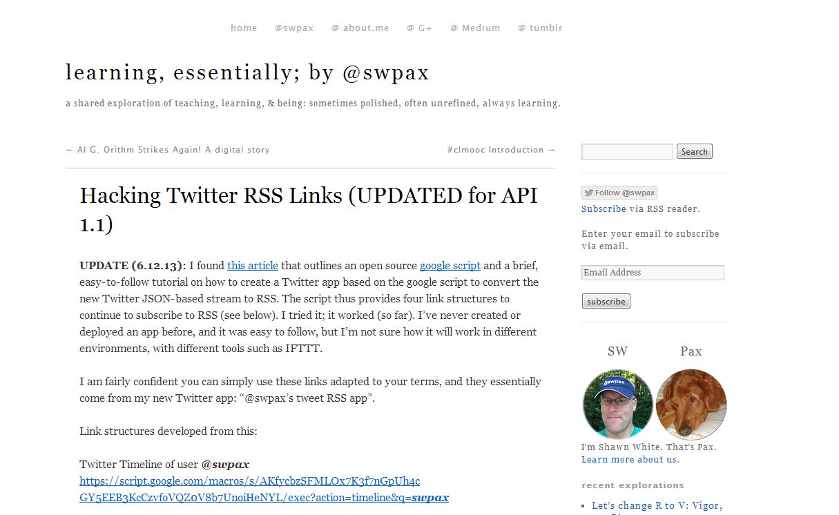 So where can we find that space in an educational setting. Where can teachers and students find that space? It’s not on Google (don’t worry I love Google), on Facebook, on Instagram, or anywhere where there is a company managing and mediating your space. The “Low Road” in education is having your own personal website. Not a class website that is associated with a school or activity that can exert subtle and not subtle pressure on you and your content. Not as a part of a larger community that has certain expectations and sense of decorum. No, it needs to be your own space, with your own identity or name as the url. Like