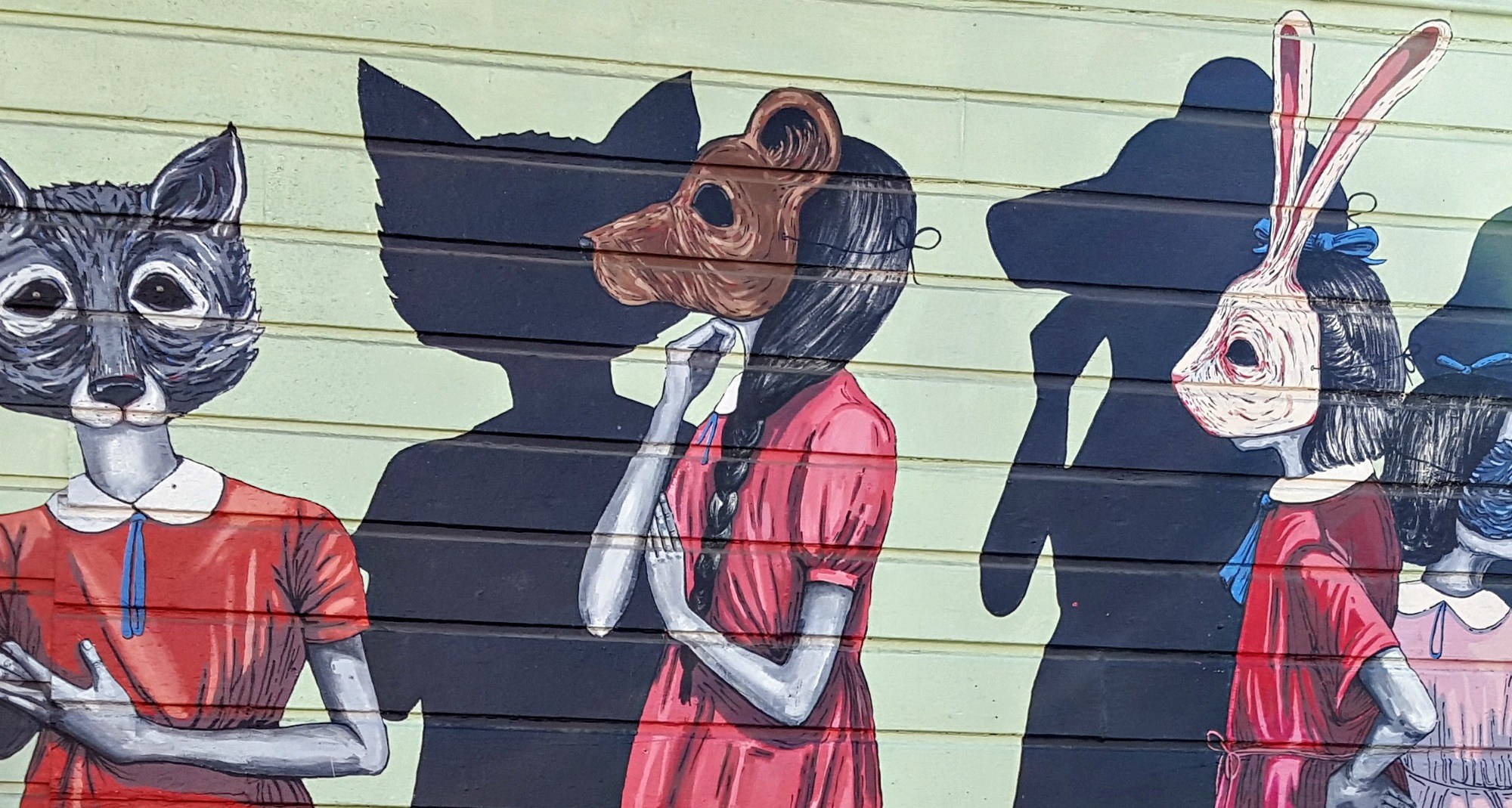 Kids don’t belong on a dirty side street. Kids in old-fashioned dresses don’t belong on a busy San Fransisco street. Kids don’t usually wear creepy masks. Put them all together and you have something that pops, something that stands out, something new.